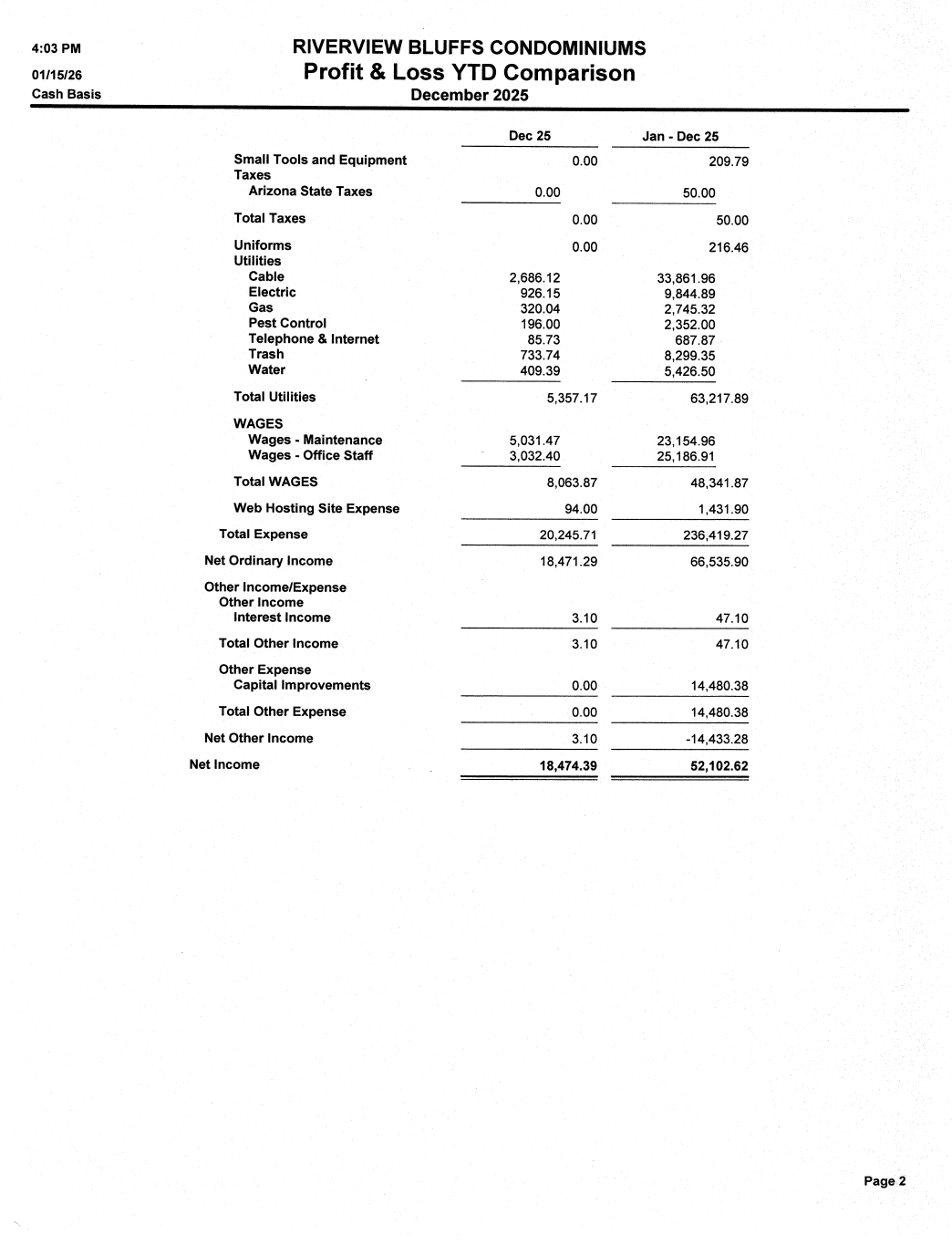 RIVERVIEW BLUFFS CONDOMINIUMS APPROVED BUDGET 2025